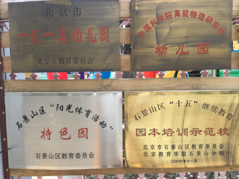 がある.北京の模範幼稚園らしい.誇らしげな