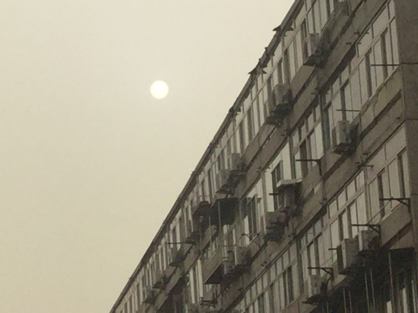 この時の黄砂では,上空に雲がある気配はなく,真昼の太陽も朧月夜 の満月のように見えた.