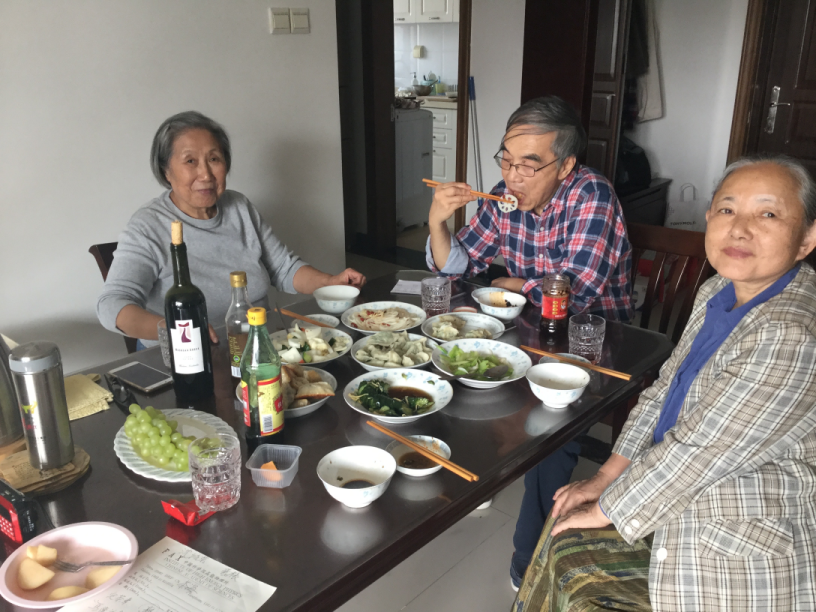 6日は譚さんが例の28号楼のマンション宅へ招待して くれて,お昼をご馳走になった.未知のいろいろな 野菜料理と餃子を美味しくたっぶりいただいき 満腹となった.全て奥さんの郭小娟(Guo Xiao Juan)さん の手作り. 翌日は,ユリの球根とセロリのサラダを 早速女房が真似をして,似た味のものを作って食べた.